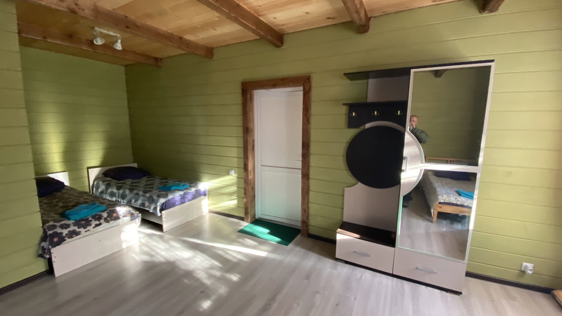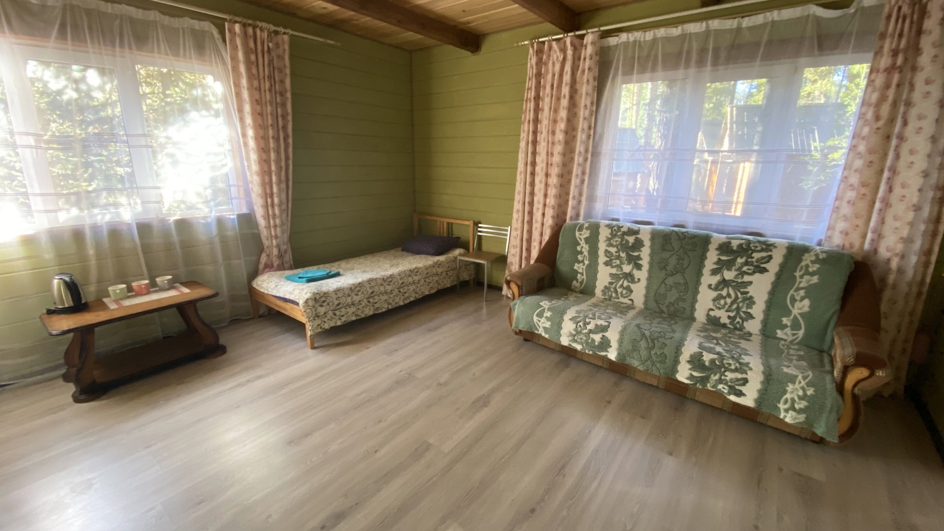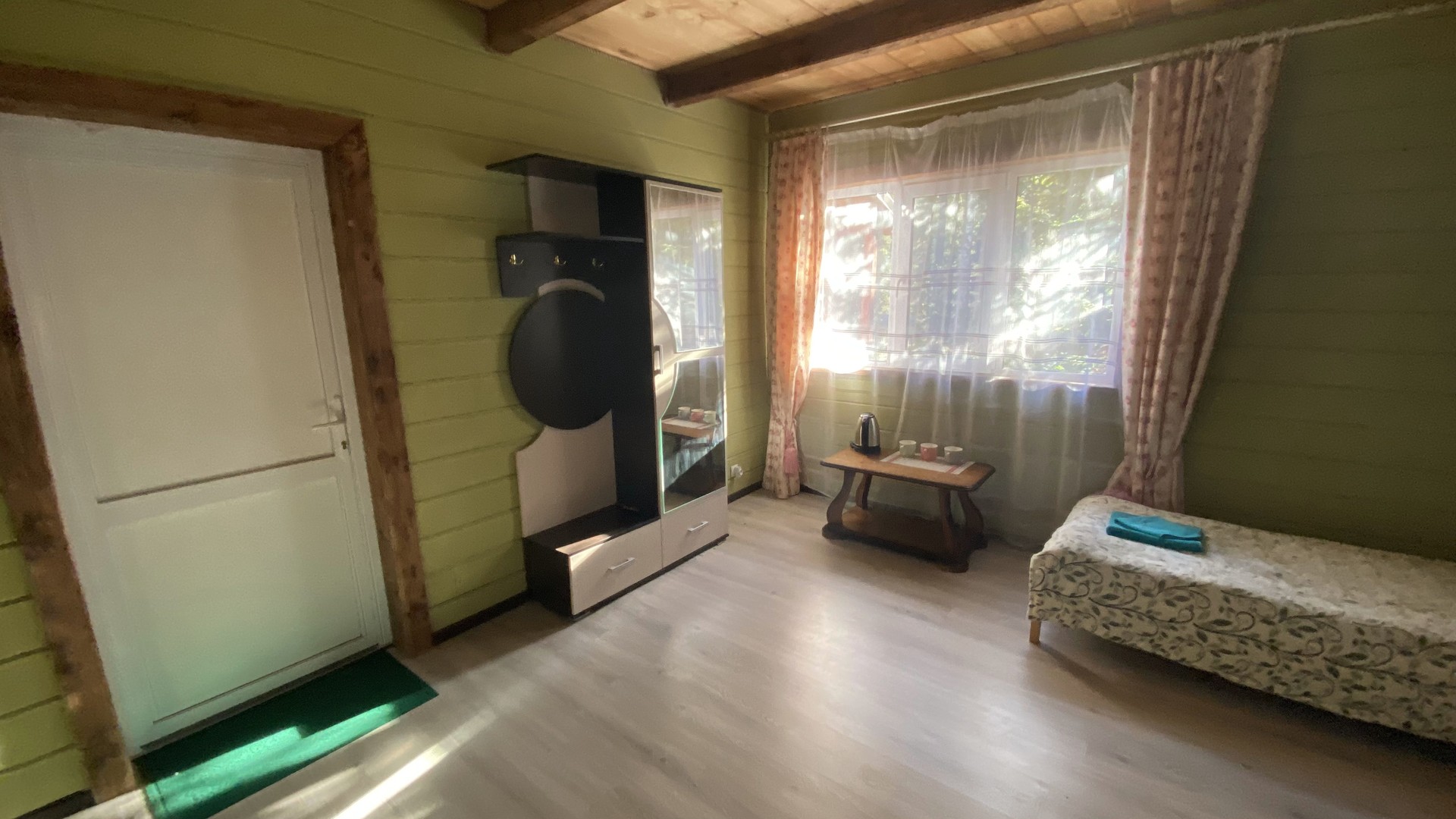 Отдельно стоящий, двухэтажный коттедж на 4 номера, каждый номер имеет отдельный вход с улицы (2 номера на первом этаже и 2 номера на втором). Номера семейного типа (площадь номера 25 м. кв.): двуспальная и односпальная кровать как дополнительное место.